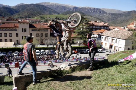 Al finalizar la jornada, en la última zona, la de tipo indoor, situada en pleno casco urbano, se realizó una exhibición de Biketrial por parte de los alumnos de la escuela del Moto Club Abadesses.