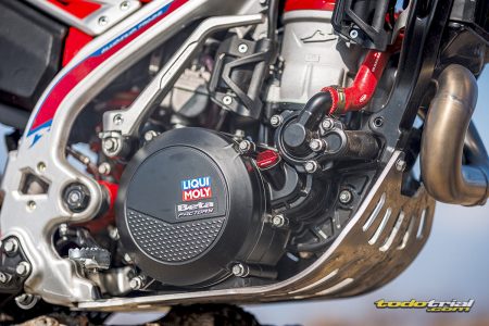Además, la doble bujía contribuye a una mejor gestión térmica, reduciendo el riesgo de incrustaciones y favoreciendo un rendimiento constante incluso en condiciones de uso prolongado. El resultado es una moto más ágil, regular y potente, capaz de afrontar secciones técnicas con mayor precisión y seguridad.
