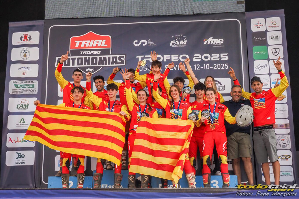 La categoría Equipo Trofeo volvió a ser uno de los apartados más disputados del Trial de las Autonomías 2025, aunque en esta ocasión el dominio también fue de Cataluña, que realizó una actuación impecable, completando las doce zonas del recorrido por los pasos azules sin acumular ni una sola penalización.