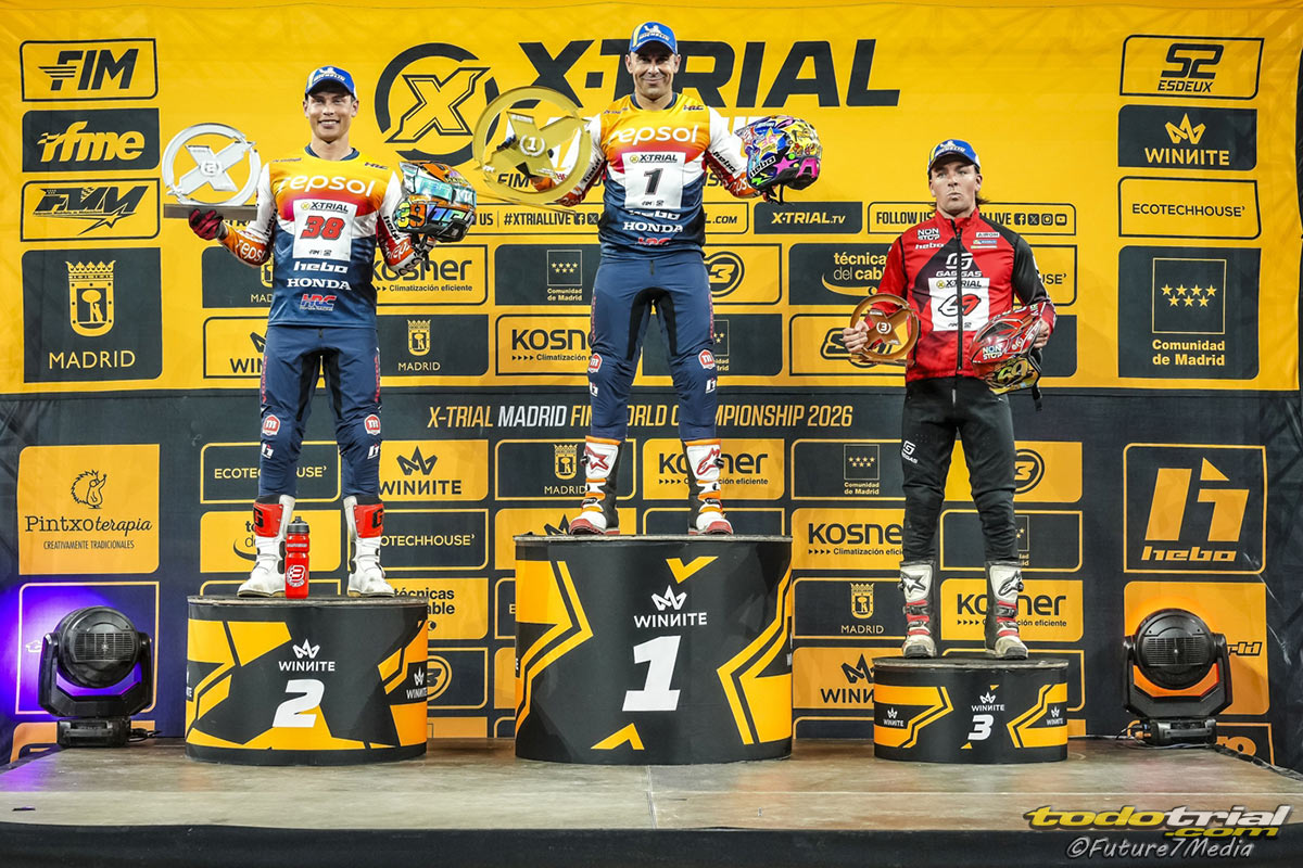 El Campeón del Mundo Toni Bou gana en la capital de España donde se repite el podio inicial de Andorra la Vella, con Gabriel Marcelli y Jaime Busto.