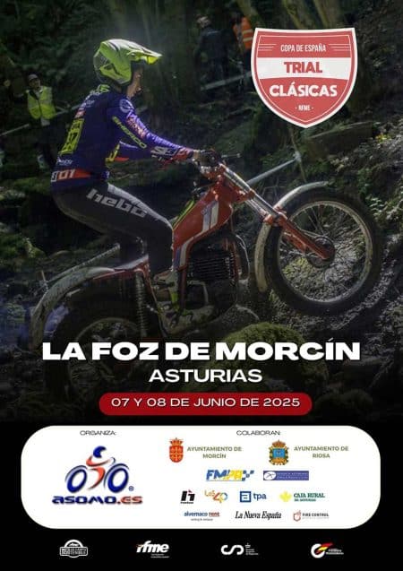 La tercera cita doble de la Copa de España de Trial de Clásicas llega el próximo fin de semana, días 7 y 8 de junio de 2025, en el idílico entorno asturiano de La Foz de Morcín, donde nuevamente la Asociación Motorista de Asturias (ASOMO) será la encargada de ofrecer un trial, que siempre goza del agrado de los participantes.