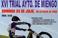La cuarta prueba del Campeonato de Cantabria de Trial 2016 será en las proximidades de la Playa de Usgo, por supuesto hablamos del Trial Ayuntamiento de Miengo, que llega a su décimo sexta edición el próximo domingo 24 de Julio. Esta prueba será también puntuable para el Campeonato de Castilla y León y la Copa Cántabra Infantil.