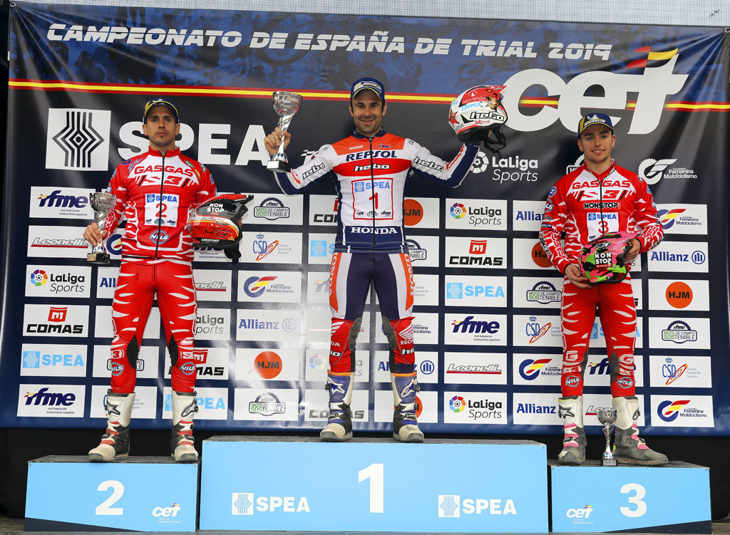 Como no podía ser de otra manera, en la jornada del domingo la lucha por estar en el cajón más alto del pódium en todas las categorías ha sido la nota dominante. En TR1 el de Montesa ha superado al resto de sus rivales y ha sido primero. En esta ocasión ha estado en el pódium acompañado por Jeroni Fajardo y por Jaime Busto.