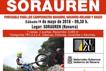 La localidad navarra de Sorauren acogerá este próximo sábado 19 de mayo un trial puntuable para los campeonatos Navarro, Navarro-Riojano y Vasco de Trial, y estará organizado por el Moto Club Kabras.