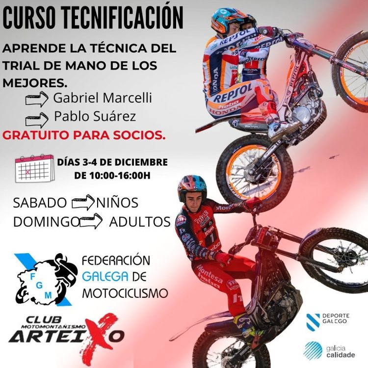 Gabriel Marcelli y Pablo Suárez serán los monitores del curso de trial que organizará el Club Moto Montañismo Arteixo los días 3 y 4 de diciembre en esta localidad de La Coruña.