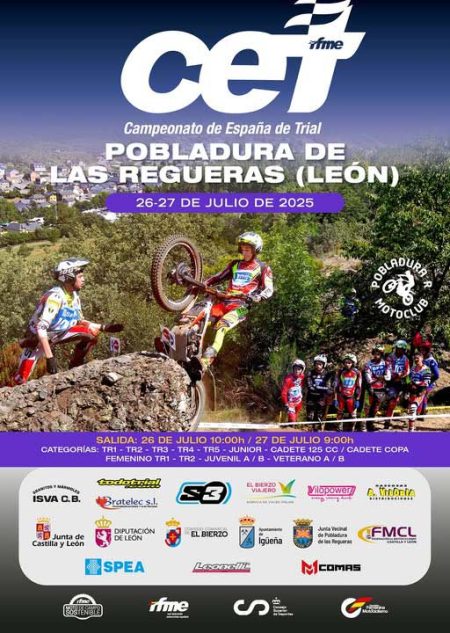 El Campeonato de España de Trial «CET» 2025 afronta un momento clave en su calendario con la celebración, los próximos 26 y 27 de julio, de la quinta y sexta pruebas puntuables en Pobladura de las Regueras (León). A las puertas del desenlace final en Entrimo (Galicia), estas dos jornadas consecutivas se perfilan como decisivas para el futuro de los títulos en juego, ya que suponen la antepenúltima y penúltima cita del campeonato.