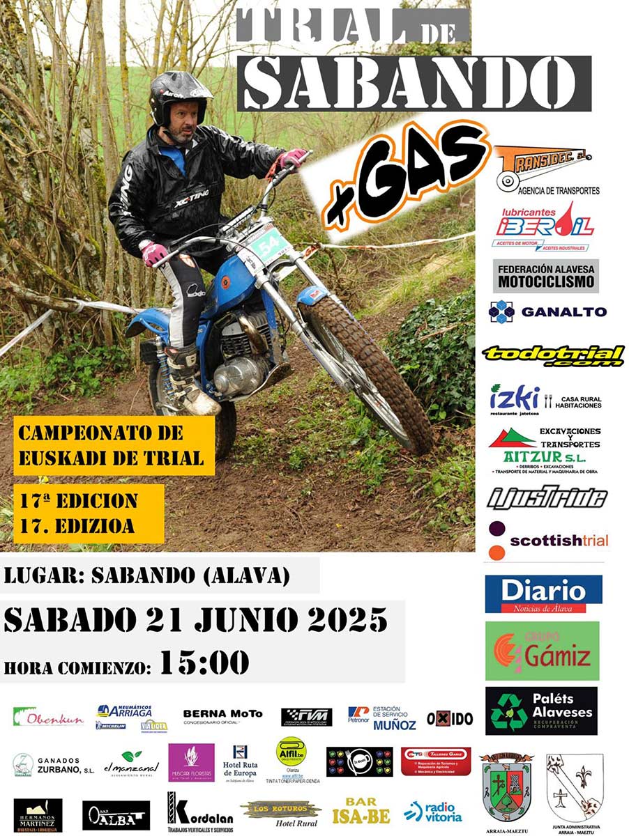 El próximo sábado 21 de junio vuelve el Trial de Sabando, que llega a su 17 edición, un clásico del trial vasco en un entorno inigualable, organizado por el Moto Club +Gas.