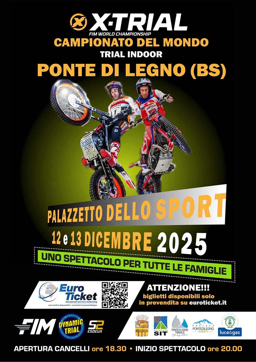 El regreso del Campeonato del Mundo FIM de X-Trial a Italia después de más de una década de ausencia ya tiene a los protagonistas que competirán en el Palasport de Ponte di Legno los próximos 12 y 13 de Diciembre con la celebración de dos pruebas consecutivas en esta localidad de la Lombardia.
