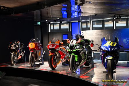 Todas las motocicletas expuestas tienen pedigríes de competición autenticados e incluyen modelos como la AJS Porcupine de 1949 con la que Leslie Graham ganó el primer título del Gran Premio FIM de 500 cc, la Honda RC166 de 1967 de Mike Hailwood o la Kawasaki Ninja ZX-10R de 2016 de Jonathan Rea, que le llevó a la segunda de sus seis coronas consecutivas en el Campeonato del Mundo de Superbikes.