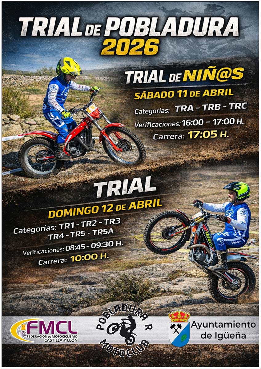 Campeonato de España de Trial Pobladura de las Regueras, León Categorías: TR1, TR2, TR3, Junior, Cadete, Cadete 125, TR4, Féminas TR1 y TR2, Juvenil A y B, Veteranos A y B,
