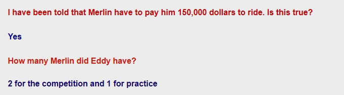 ¿Me han dicho que Merlin ha tenido que pagar 150.000$ (a Eddy Lejeune) para que corra (con Merlin), es cierto?