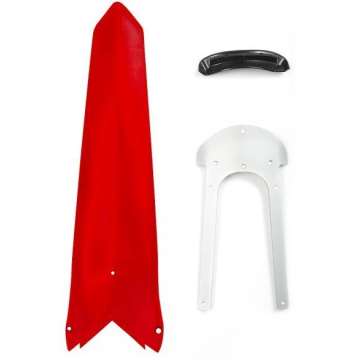 Para mitigar el problema yo le fijo al guardabarros por su interior una pletina de aluminio (blanca) a lo largo del guardabarros hasta la caja del filtro, de esta manera si se retuerce el aluminio reduce su flexión no se rompe, además mitiga las vibraciones del guardabarros y la fatiga del material. Si te caes la puedes enderezar y a seguir.