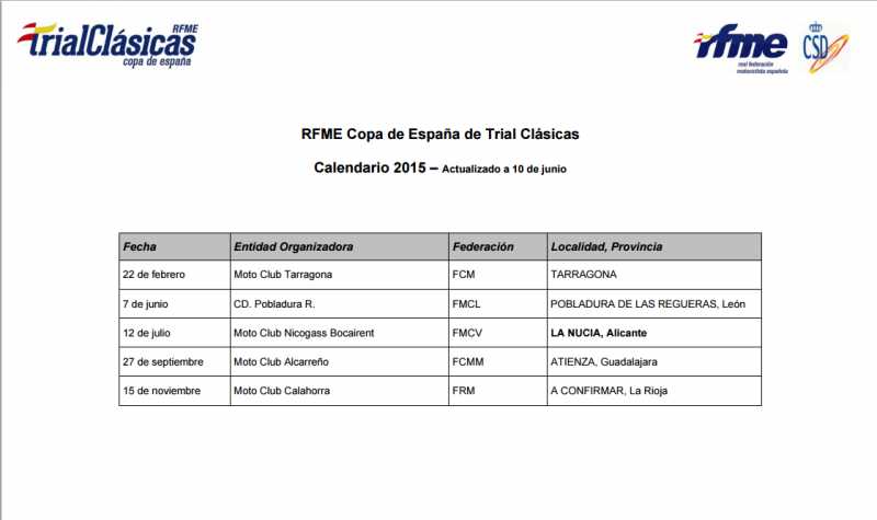 A falta de diez días para la celebración de la cuarta prueba de la Copa de España de Trial de Clásicas en Atienza (Guadalajara) no hay noticias sobre la celebración o la suspensión de la misma. En la web de la RFME no aparece la hoja de inscripciones pero sigue apareciendo en el calendario.
