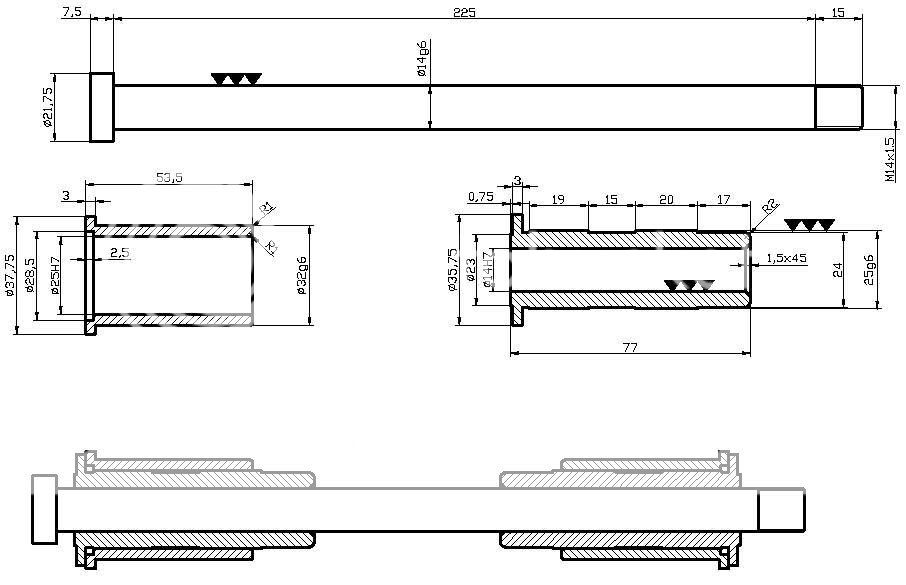 Si alguien me dice como, puedo poner aqui los planos del conjunto del eje con los 4 casquillos que me fabriqué en su dia y me ha funcionado bien. Es un archivo pdf.