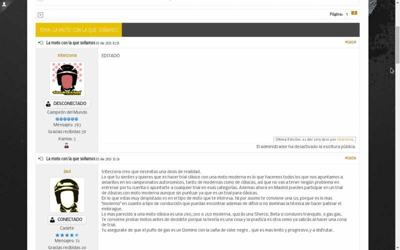 Me remito al famoso hilo Trialsinconmotor …. por cierto, se ve que el monotema resurge por sí mismo y desde diversas fuentes. Me alegro porque demuestra libertad de expresión, espíritu crítico e inconformismo por parte del foro.