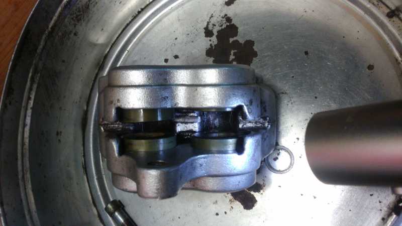 Gracias Sergi, te cuento, me han dejado un compresor y bloqueando los pistones que si se movían he conseguido finalmente sacar el clavado, lo que no consigo es sacar los 4 pistones al mismo tiempo ya que una vez que sacas 1 cuando das el golpe de aire por el orificio del latiguillo, se escapa el aire por el hueco del pistón ya sacado , bueno los sacaré 1 a 1, limpiaré, engrasaré con el dot(levemente) y volvere a montar, otra aventura será el sangrado ….comentar que con la pinza cerrada es muy complicado de limpiar en general ya que hay muy poco espacio de maniobra, ya os contaré .