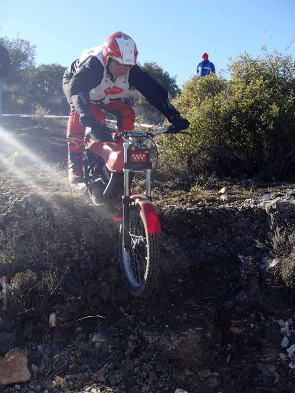 …cuya amortiguación ha aguantado escaloncitos como el de la foto (Trial de Villar del Olmo ¡que bueno!) con un piloto no precisamente ligero.