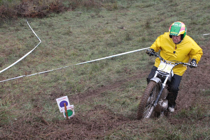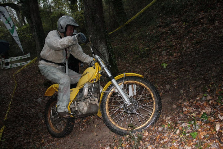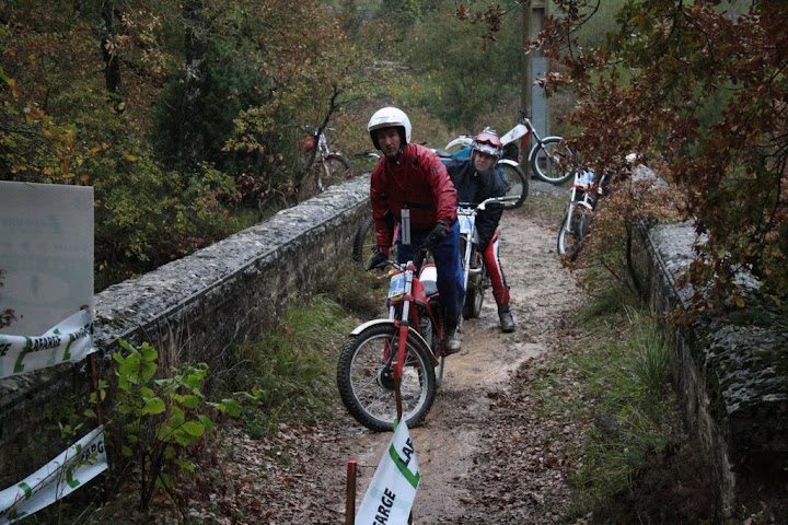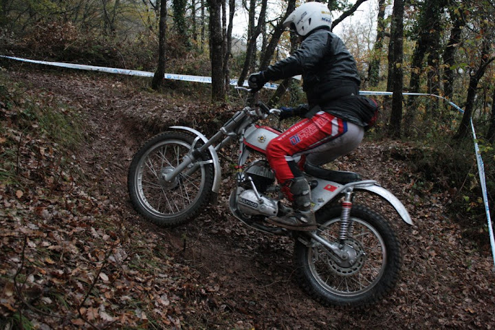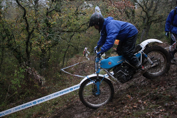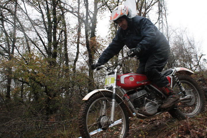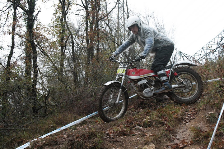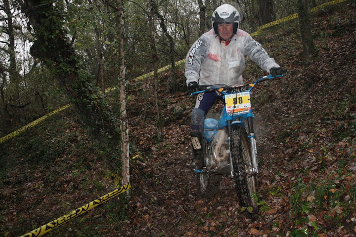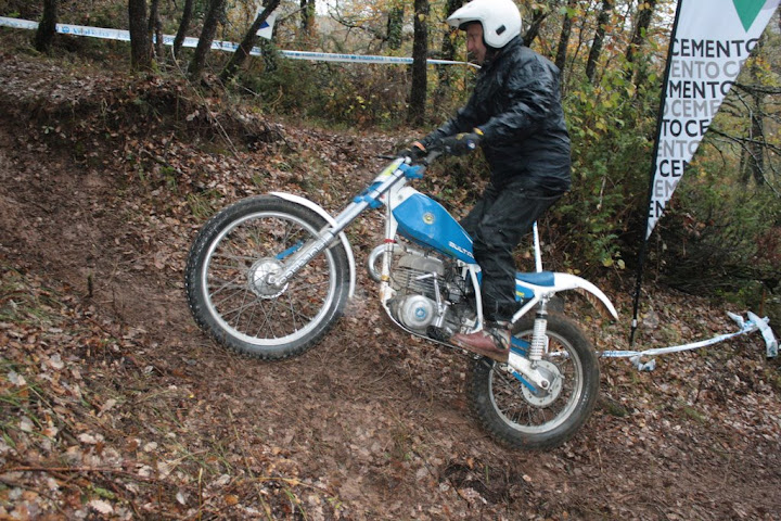 Yo también me encontré con Vanetrial en la zona 10, pero justo de frente. Os explico. La zona 10 se las traía. La primera parte era la más difícil y la pasé a 1 punto, pero cuando me toca afrontar la segunda subida embarrada, la moto se queda sin tracción justo en el quicio. Como me empeñé en no poner el pié ocurrió lo que tenía que ocurrir. La moto me hizo un extraño, saqué el pié pero ya era tarde. Al ponerlo en tierra resbaló y la moto salió justo ladera abajo y a toda castaña. Paso el límite de zona y aquello no frenaba y lo peor es que me dirigía directo a un precipicio que había al lado. Pero por fortuna había unos cuantos espectadores que no dudaron en pararme en mi trayectoria hacia el vacío (ya que no tuvieron otra opción ya que fui contra ellos como un miura). Pues bien, la primera que estaba era Vanetrial, así que GRACIAS!!!! Si no es por tí y por los que te acompañaban no sé que hubiera pasado. Eso sí, las risas fueron tremendas, debajo de la lluvía, pero todos, lo que se dice todos descojonados de la risa, jueces incluidos, jajajaja. Esto es lo que mola del trial clásico.