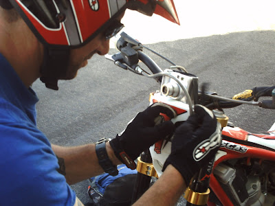 Por cierto, salimos el viernes por la tarde, estuvimos viendo los consejos de equilibrio de la moto de Canarygas, llegó Maykejoe, el actual lesionado, el pobre salió el Jueves sin nosotros y se lastimó un dedo, total que se vino con nosotros a vernos y a sufrir por no poder coger su moto. La tarde fué bien, pero para mi, fué de esos días que no das pico en bolo. Estuvimos en un descampado cerca de donde tenemos las motos para practicar un poco el tema de mover la moto, hay un pequeño avance, pero muy muy pequeño. Total, que el amigo Maykejoe, con la mano vendada y el mismo tiempo de trial que nosotros, ya mueve la moto parada a placer, es un maldito!! Esos años de bici se le notan.