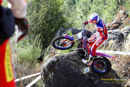 Víctor Ares (TRRS) sorprendió en Entrimo con un sólido triunfo en su tierra (2 puntos), acompañado en el podio por Cristian Naranjo (GasGas) que compitió en ambas jornadas en distintas categorías y terminaba el sábado con 5 puntos, completando el podio el recientemente convertido padre, Roberto Bautista (Sherco).