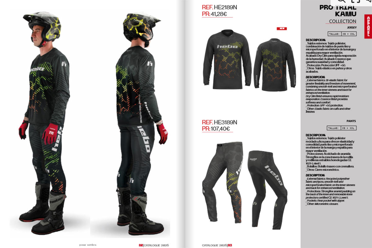 Hebo completa la renovación en lo referente al trial con los diseños actualizados de las equipaciones Trial Tech y Pro, a los que se suman las colecciones Montesa y Classic, que también presentan mejoras estéticas y funcionales para la temporada 2026.