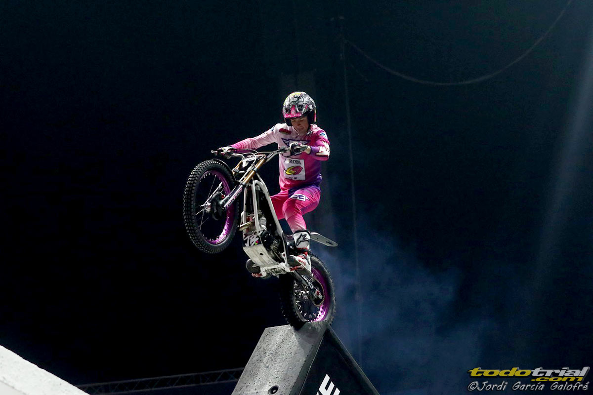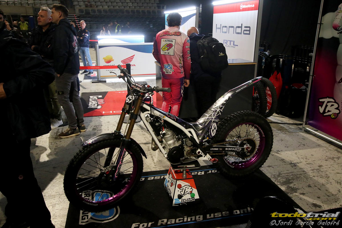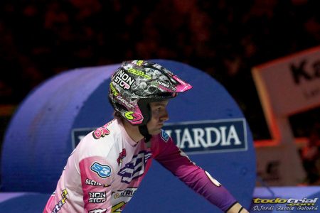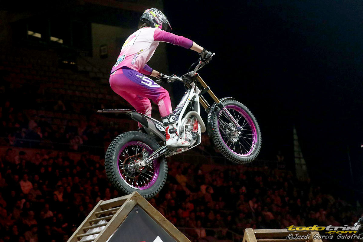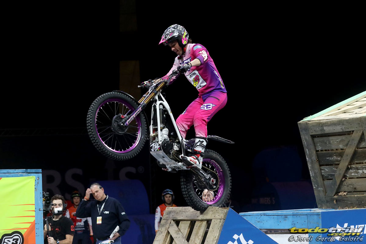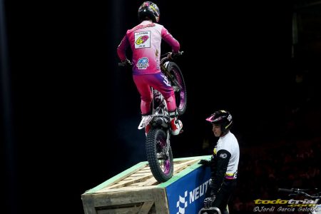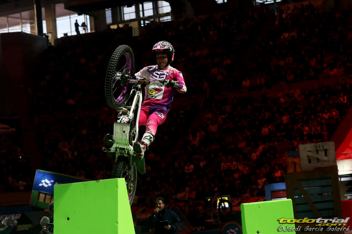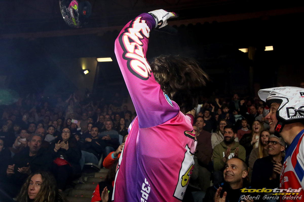 En un pabellón con menos público que en ediciones anteriores —otro síntoma del momento que atraviesa el trial— el vasco volvió a conectar con la grada. Y no solo por su pilotaje.