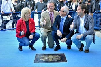 Si hace unos días os informabamos de la concesión del Premio Racimo del Ayuntamiento de jerez a la Comisión Femenina de Motociclismo, Jerez vuelve a ser noticia, ya que la alcaldesa de Jerez, Mª José García Pelayo y el coordinador de Jerez Capital Mundial del Motociclismo, Antonio Saldaña, acompañados por el presidente de la Federación Internacional de Motociclismo, Vito Ippolito y el presidente de la Real Federación Motociclista Española, Ángel Viladoms, han inaugurado hoy en el Paseo de la Fama de Jerez las ruedas estrellas de ambas instituciones.