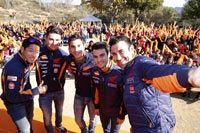 Márquez, Pedrosa, Bou, Fujinami y Busto visitan la escuela en Sant Andreu de la Barca (Barcelona) ganadora de un concurso organizado por Repsol que animaba a los escolares a ensalzar los beneficios del trabajo en equipo.