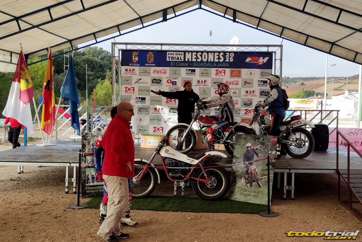 La Montesa con la que compitió hace un par de años se exhibía frente al podio de salida, acompañada por un cartel con fotografías suyas y la frase “Recordadme siempre así”. Otro cartel similar, con el mismo mensaje, recordaba a Jesús Sanz, otro trialero muy querido recientemente fallecido.