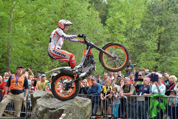 El retorno del Mundial de Trial al GP de Alemania en la localidad de Gefrees ha sido intenso, con una prueba complicada por lo resbaladizo del terreno y muy igualada, en la que al final los tres puestos del podio han estado separados por apenas 4 puntos destacándose del resto. Y ha sido Toni Bou (Repsol Honda) quien ha logrado el objetivo, sumando su tercera victoria y ampliando su ventaja en la general. Segundo ha sido Adam Raga (TRS) y tercero Albert Cabestany (Sherco).