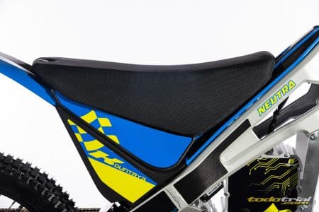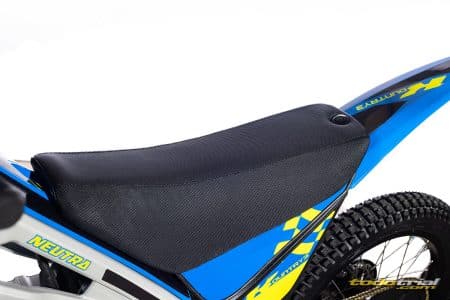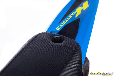 La principal novedad de este modelo es su asiento fijo y elevado, sostenido por un subchasis reforzado, que proporciona una posición de conducción más cómoda y relajada. Una configuración idónea para que los más pequeños se inicien en el mundo de la moto de montaña.