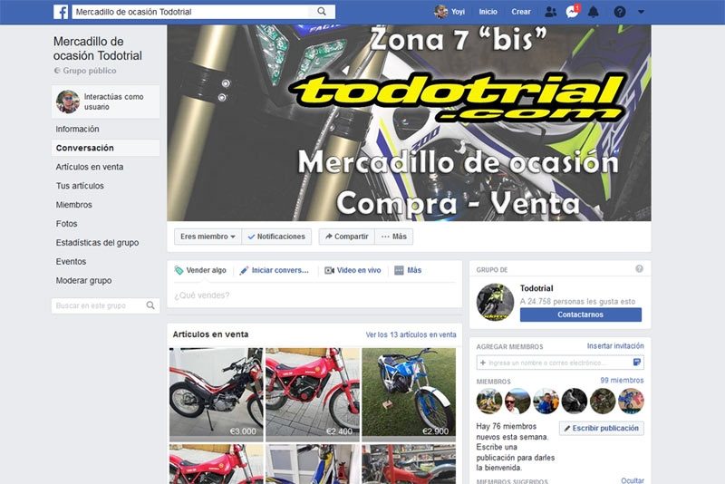 Aunque el Mercadillo de Todotrial (zona 7) está a punto de cumplir 19 años, siendo por lo tanto el primer soporte online para la compra-venta de motos y recambios especializado en trial, los tiempos cambian y llega el momento de actualizarse a las últimas tendencias, con lo cual acabamos de estrenar el nuevo Mercadillo de Ocasión Todotrial en Facebook, que encontrarás en: www.facebook.com/groups/mercadillotodotrial.