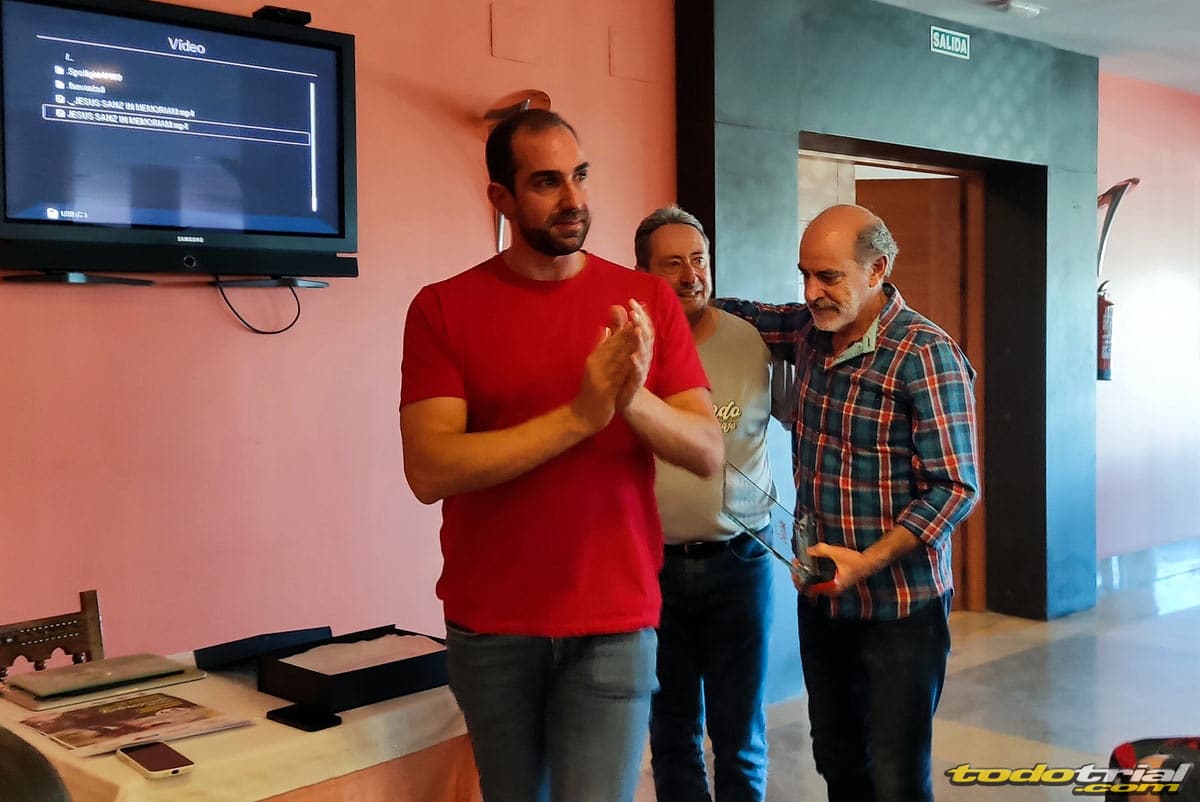 En la tarde del sábado, en el salón del Hotel Los Cerezos, se realizó un emotivo homenaje a Jesús Sanz, piloto madrileño muy querido por todos los aficionados y fiel miembro del Moto Club Sotobike. En una pantalla se proyectaron fotos suyas en numerosos triales y vídeos en los que algunos de sus compañeros de club elogiaban con cariño su figura. Posteriormente Manuel Casado pronunció unas palabras en recuerdo de su gran amigo, que interrumpidas por la emoción dieron paso a la entrega de una placa a la familia de Jesús, representada por su hijo y por su hermano Julián, también conocido trialero.