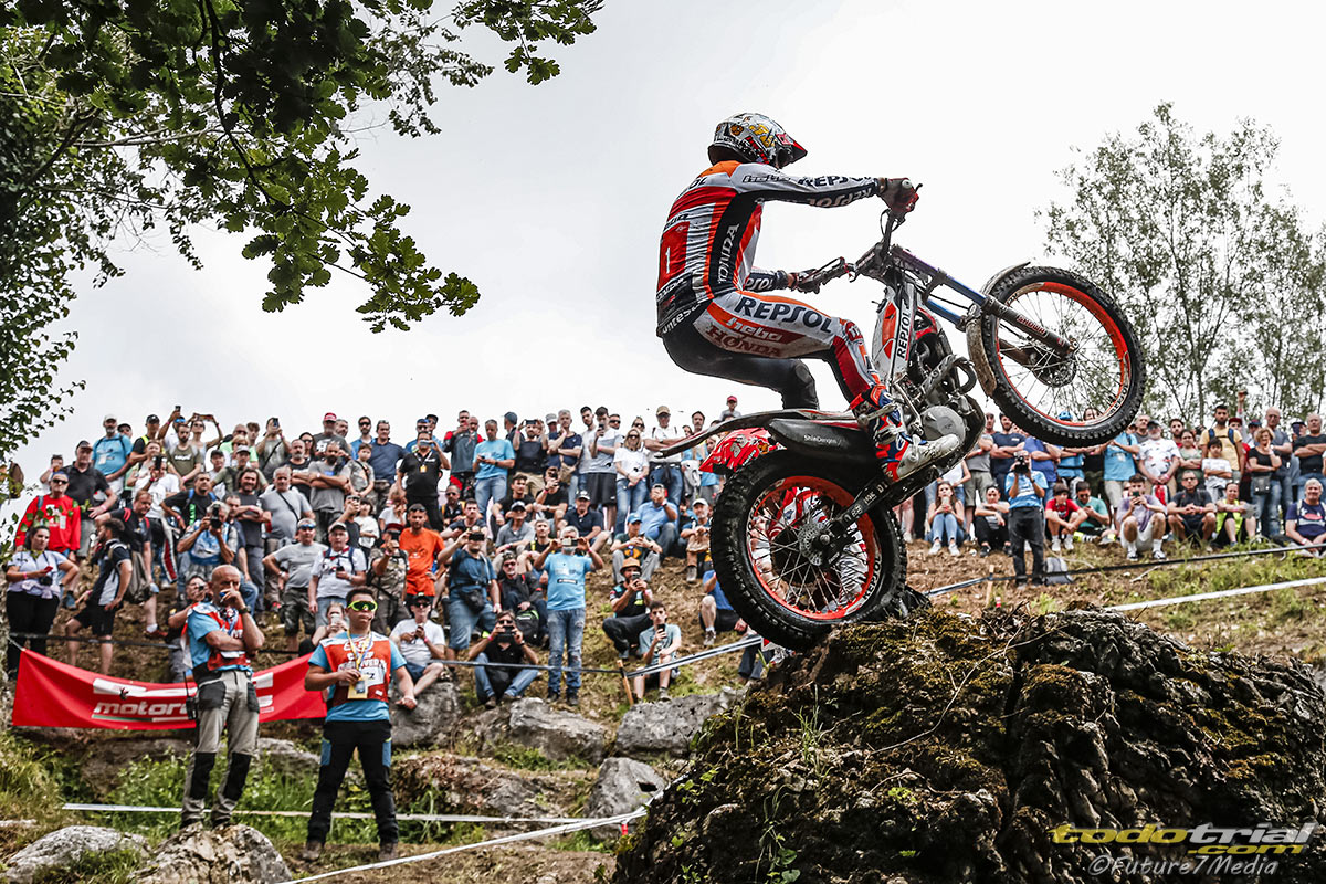 Siempre muy reñida y disputada, la categoría Trial2 se está convirtiendo en la favorita de los aficionados que buscan emoción, y en la cabeza hay una lucha a dos bandas entre el prometedor británico de 19 años Harry Hemingway (Beta) y el catalán de 27 Miquel Gelabert (Honda).