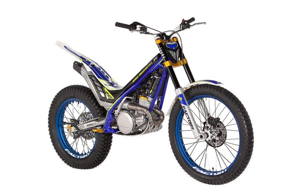La lista de elementos exclusivos de la nueva Factory en el apartado ciclo son numerosas, destacando la nueva horquilla Tech con barras de aluminio con acabado DLC, amortiguador posterior Ohllins, discos de freno Galfer, llanta trasera rebajada, manillar blanco Cabestany, tensor de cadena de aluminio, bridas sujeción del manillar, protector corona trasera, palancas de freno trasero y de cambio, toda la tornillería acabada en níquel zinc y una nueva placa protectora del motor especialmente diseñada para superar obstáculos con más eficacia.