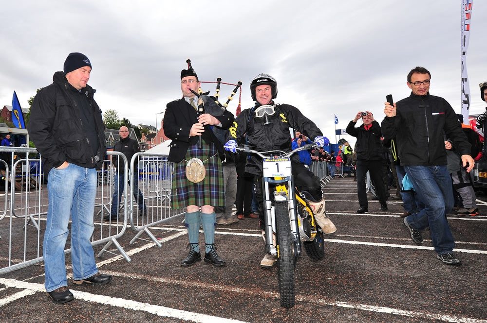 El gaitero Willie Evans ha escoltado durante la salida al piloto escocés Iain Shankie, tal como podéis ver en el vídeo que podéis ver a continuación, un año más realizado por John «Bigfoot» Hird. El resto de los participantes tomaban la salida a continuación con un intervalo de un piloto por minuto para hacercarse por carretera al primer grupo de zonas, situado relativamente cerca.