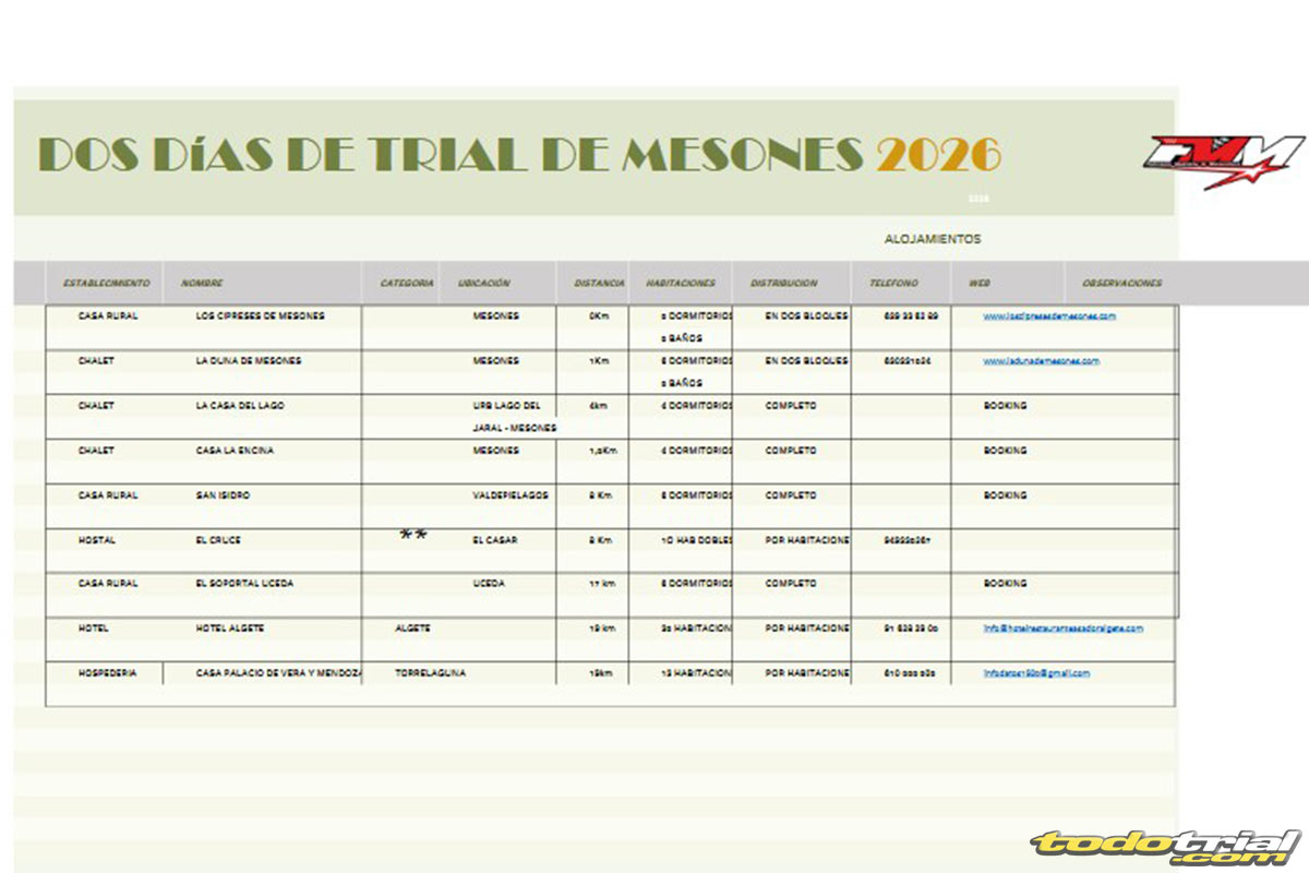 El recorrido alcanza los 14 Km, la práctica totalidad del perímetro de Mesones. Una distancia difícil de realizar en los triales de la zona centro, que además contará con la particularidad de que no se desarrolla lo largo de tramos excesivamente complicados, permitiendo disfrutar de la moto y del pasaje de manera relajada. Una interzona que destacaron muchos de los participantes de la edición anterior.
