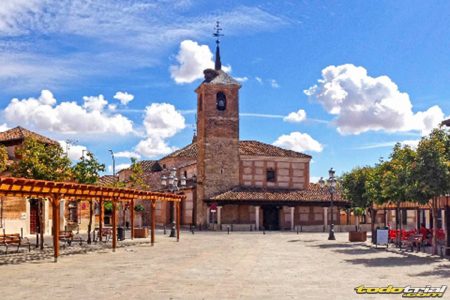 Está construida en la parte más alta del pueblo, con sillarejo de calicanto, mucho ladrillo y buenos sillares calizas en esquinas y refuerzos, tiene dos naves. Posiblemente en su origen tuvo solo una, la principal, pero el aumento de población en el siglo XVI o algo después, hizo que fuera necesario construir añadida otra nave, hoy al norte. A poniente surge la esbelta espadaña para las campanas, toda de ladrillo, muy bien restaurada últimamente, espléndida. Tiene un acceso sencillo de arco semicircular, que se abre entre los dos robustos contrafuertes que sostienen la fábrica. La portada ofrece un hermoso complejo decorativo de tono plateresco, elegante, tallado en piedra muy blanca y muy blanda.