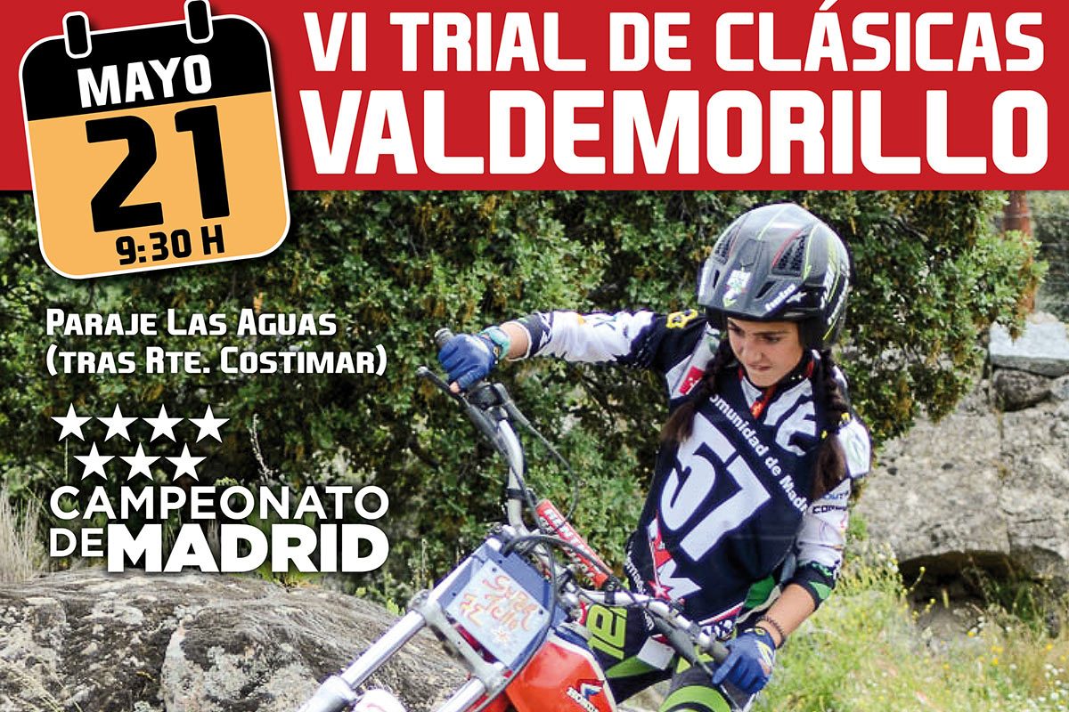 El trial de clásicas y el trial infantil tienen una nueva cita en Valdemorillo el próximo fin de semana 20 y 21 de mayo, concretamente en la tarde del sábado a partir de las 16:30 para los niños y el domingo a partir de las 9:30 para las motos clásicas.
