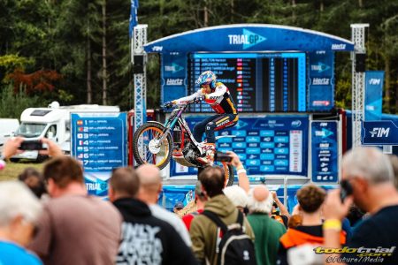 Con el campeonato ya en el bolsillo desde ayer un año más, Toni Bou podía permitirse relajarse en la máxima categoría TrialGP, pero ese no es el estilo del piloto de 38 años y, a pesar de penalizar con fiasco en la zona 12 en la primera «carrera», de tipo artificial con grandes piedras y tubos de hormigón, terminaba con 21 puntos, dos por delante de su compañero de equipo Gabriel Marcelli.