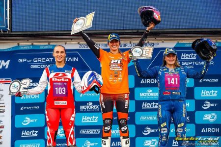La británica Kaytlyn Adshead (Sherco) terminó en tercera posición del día, tras sumar 23 puntos en cada vuelta / carrera y ser tercera y cuarta en cada una de ellas, pero el tercer puesto del campeonato fue para la checa Denisa Pechackova (TRRS), que terminó la jornada en quinta posición, por detrás de la piloto local Alice Minta (Beta).