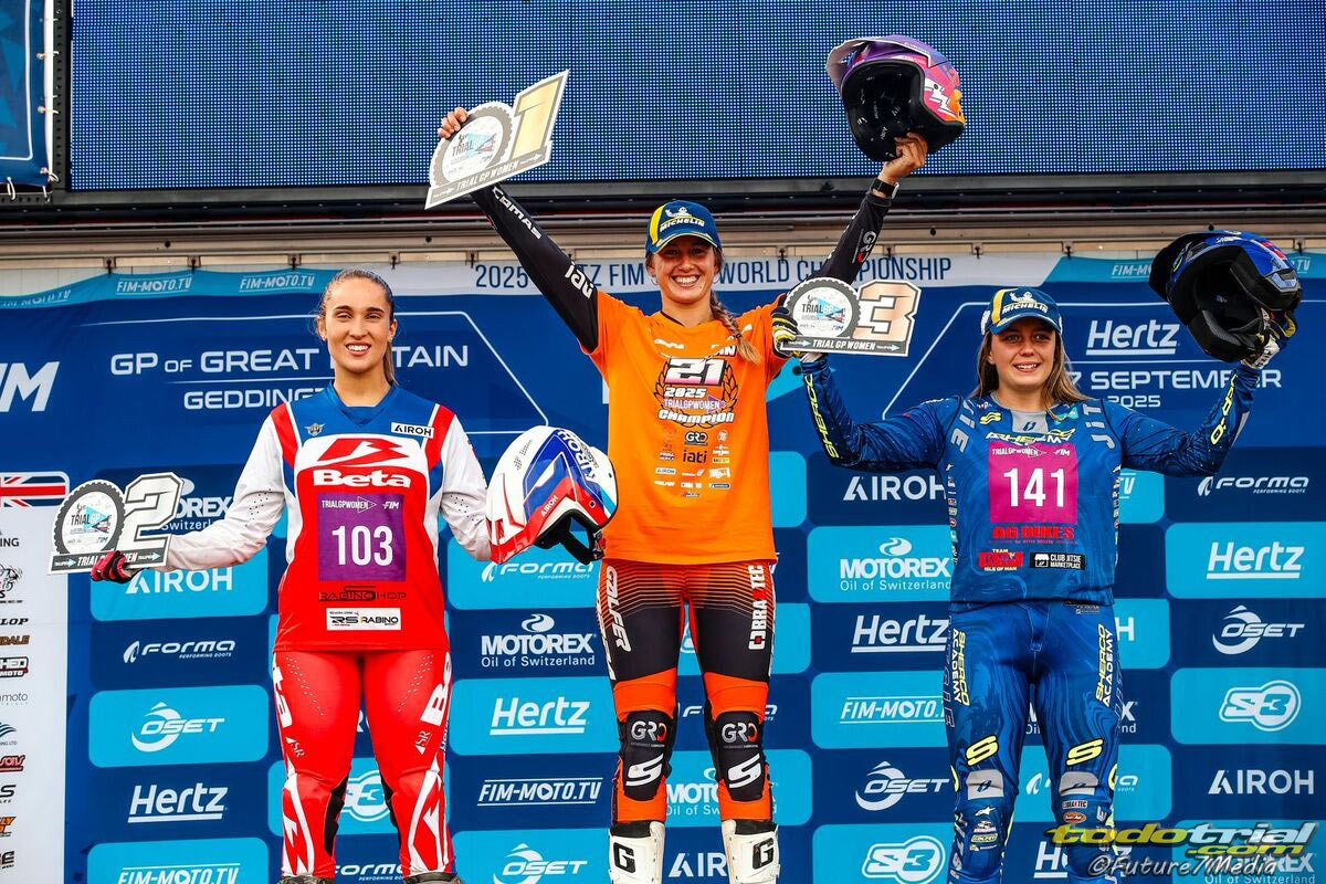 Berta Abellán (Scorpa) es la nueva campeona del mundo de trial femenino tras hacerse con el título en la última jornada de la ronda final del Campeonato del Mundo de Trial 2025, el TrialGP de Gran Bretaña, celebrado hoy en Geddington, mientras que la prometedora estrella estadounidense Ryon Land (Sherco) ha terminado su temporada de debut mundialista como campeón del mundo Trial3 y la italiana Sara Trentini (TRRS) se ha hecho con la Copa del Mundo Trial2 femenina.