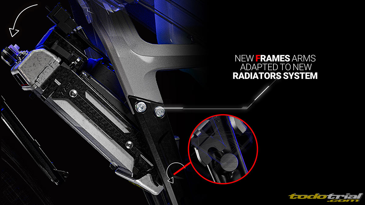 Conjunto radiador: Rediseño completo del sistema: nuevo radiador, protector, soporte, ventilador, goma de soporte del CDI y silentblocks optimizados.