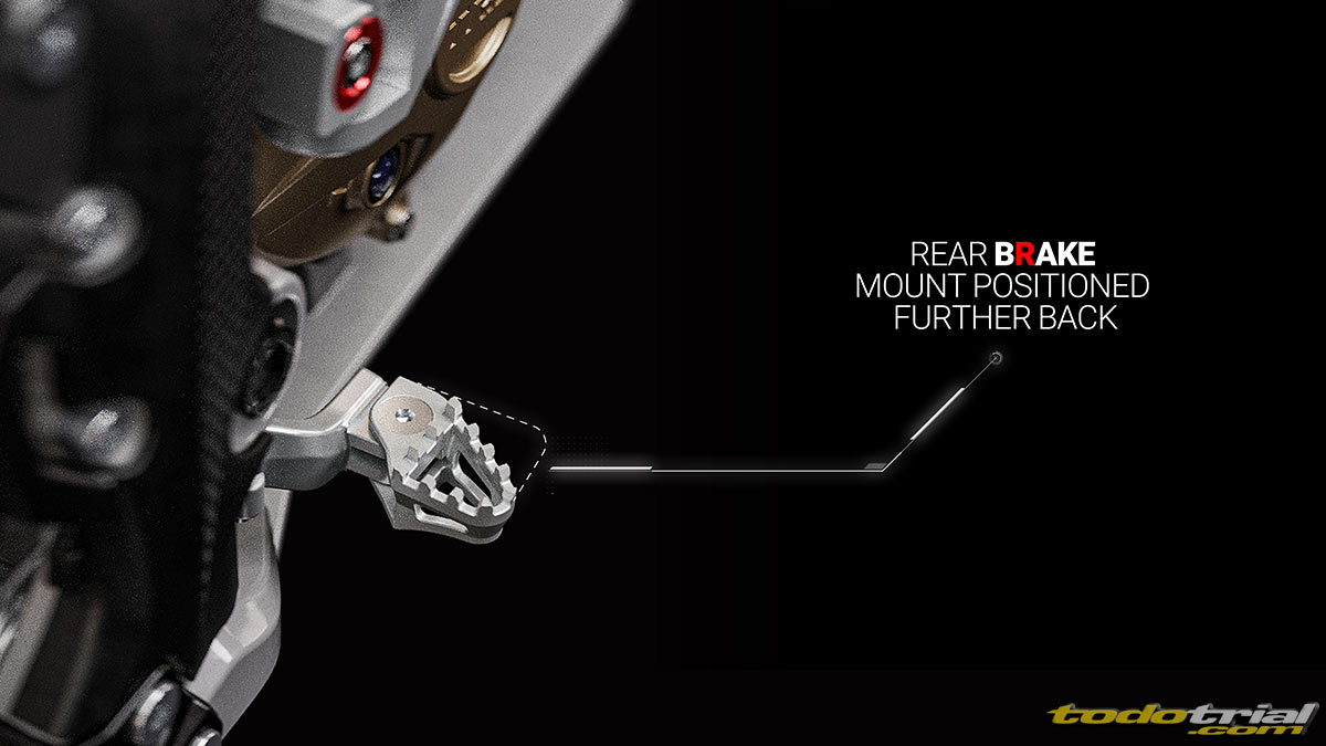 Sistema de freno y cambio: Nueva puntera en la palanca de freno trasero retrasada para un control más preciso del freno trasero. Puntera de la palanca de cambio rediseñada.