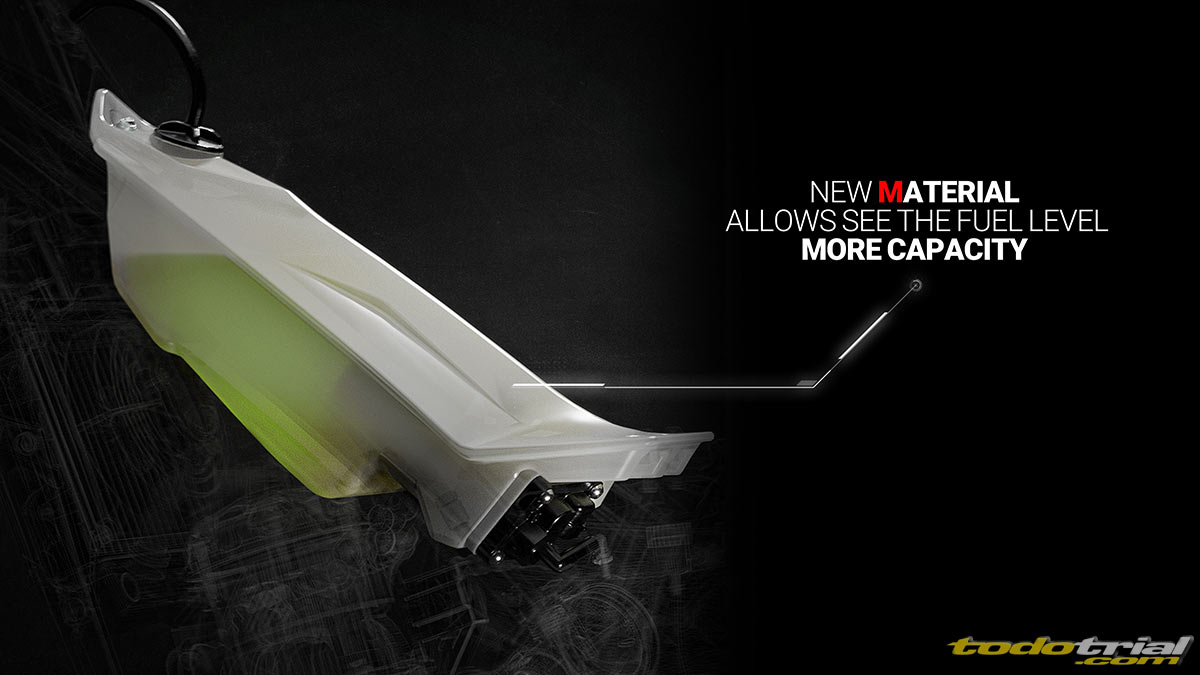 Depósito de combustible: Nuevo depósito translúcido para visualización directa del nivel de gasolina.