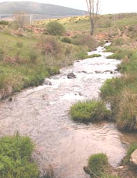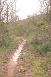 Salimos de la arboleda y discurrimos por un sendero de tierra entre jaras. Vadearemos una acequia y alguna poza a la mitad del recorrido. Entre las jaras habrá que tener precaución con alguna piedra suelta. En la acequia; las pozas, que pueden arruinarte el trial.
