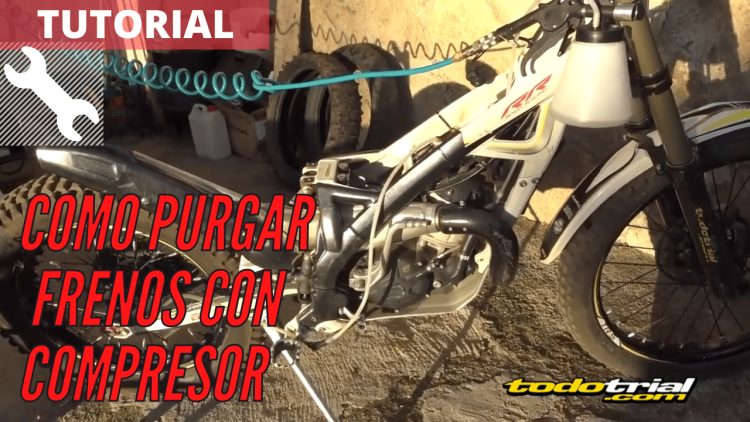 En este vídeo tutorial os explicamos cómo purgar los frenos de tu moto de trial con la ayuda de un compresor y un kit de purgado de frenos neumático que por muy poco dinero puedes encontrar en cualquier tienda de recambios para coches.