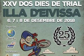 Este año llegamos a la XXV edición de los internacionalmente reconocidos II Dias de Trial Isla de Ibiza, lo que como cada año queremos aprovechar para que sea una gran fiesta para todos los trialeros. El recorrido es de 25 km aproximadamente con 20 zonas diarias.