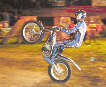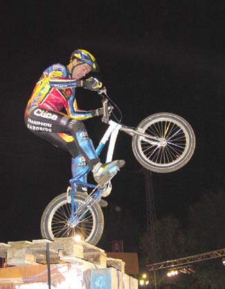 Pero el broche de oro lo puso el piloto de bike-trial, el campeón del mundo Juan Francisco López (Juanfra), quien puso los pelos de punta con sus cabriolas y saltos espectaculares al más puro estilo de lo que es "todo un mundialero".