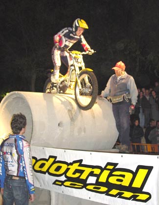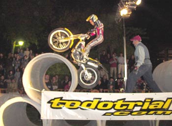 El Trial-Exhibición empezó con la primera zona muy larga y técnica de unos tubos enormes de cemento, que aunque parecía imposible de subir, ascendían como si tal cosa, ya que estaban colocados de forma estratégica. Hay que decir que, al ser una exhibición, los pilotos no se entregaron a fondo al principio, puesto que tenían a los dos días una cita con la prueba nacional de Valdemanco y claro no podían arriesgar más de lo debido.